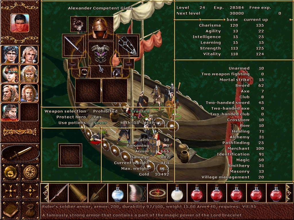 Jucătorii pot recruta diferiți eroi, care pot fi îmbunătățiți și echipați cu diverse arme și armuri.