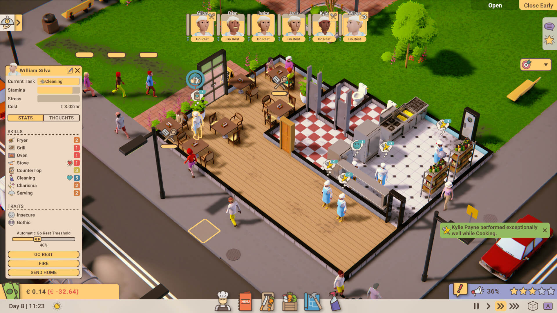 • Serviciu Clienți : Asigurarea satisfacției clienților este primordială în joc. Acordați atenție nevoilor oaspeților, calității mâncării și nivelului serviciilor.