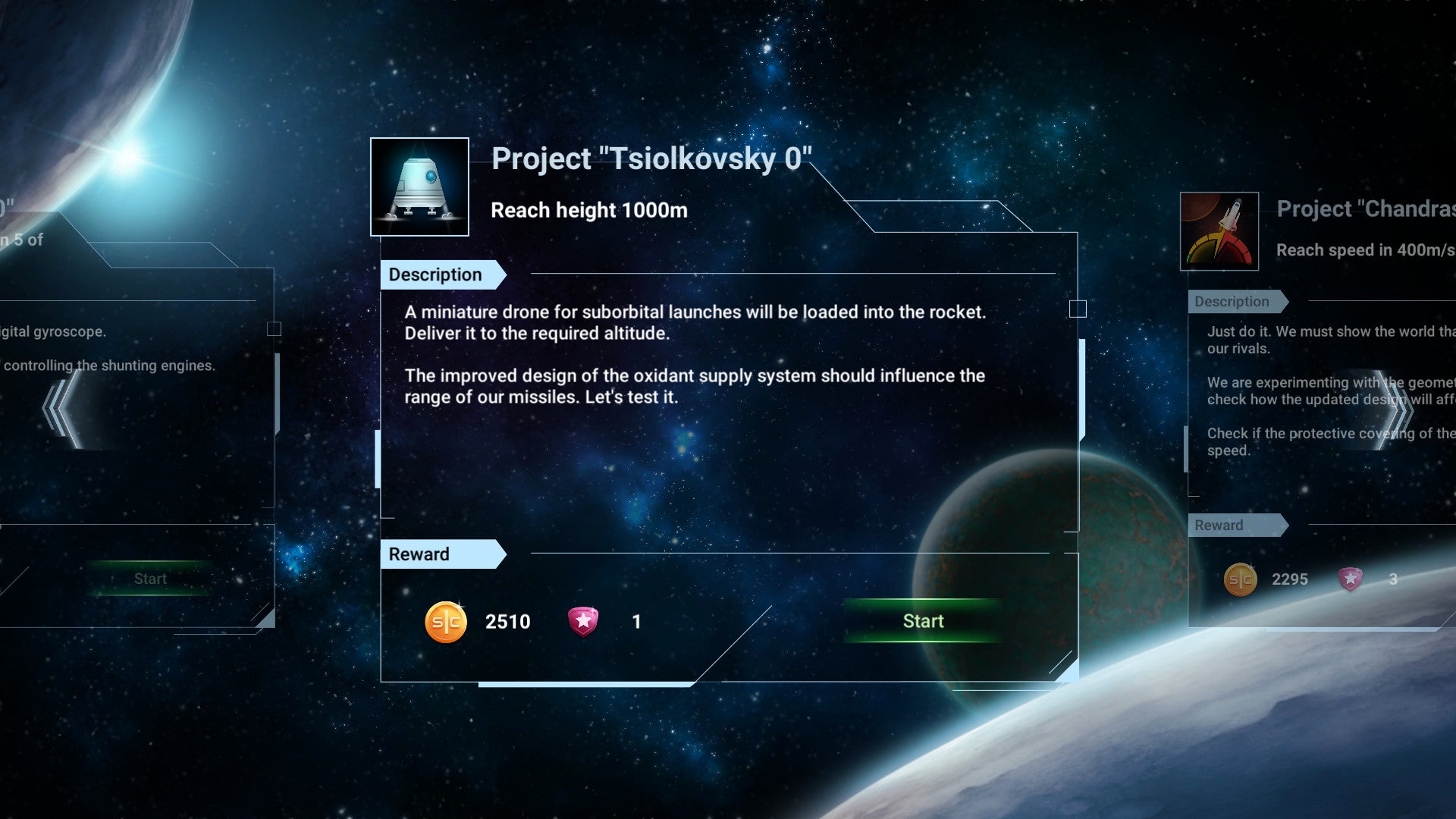 • Planificarea misiunii: Puteți alege diferite misiuni, cum ar fi plasarea sateliților pe orbită, zborul pe Lună sau chiar călătoria pe Marte. Misiunile pot avea cerințe specifice, cum ar fi consumul de combustibil sau capacitatea de încărcare utilă.