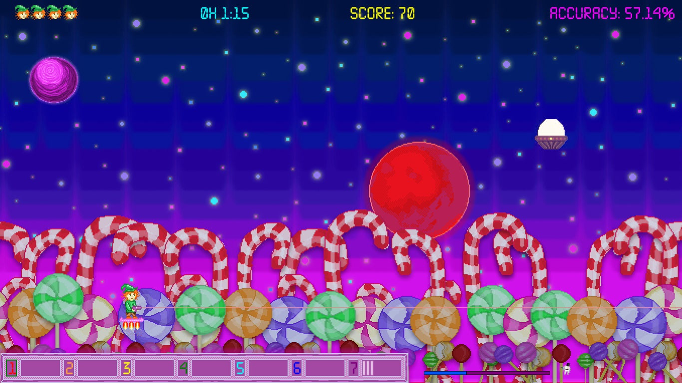 Space Leprechaun este un joc arcade plin de viață și captivant care combină mecanica jocului clasic „Space Invaders” cu magia spiridușilor și a aventurilor cosmice. În acest joc, jucătorul controlează o navă spațială a cărei sarcină este de a proteja Pământul de spiridușul spațial malefic și minionii săi.